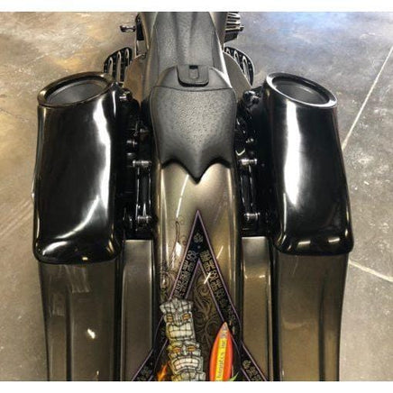 Bigger is better right? Well John has re invented the wheel with these new 8″ speaker saddlebag lids for early and late model baggers. Fits like a glove on a saddlebag that accepts OEM factory lids. Made from our famous NYB polymer so you know its super tough with superior fitment. Just mock these bad boys to your bike and then send them off to paint. It really is just that easy.  Level 2 Installation. See below for more details.