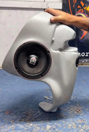 The wait is finally over! We have taken the time to streamline and perfect the lower fairing to hold either 8" or 10" with a built-in tweeter. We have added a front mounting area either for a tweeter or an added driving light. We have ALSO added an area to mount a 6.5” speaker.